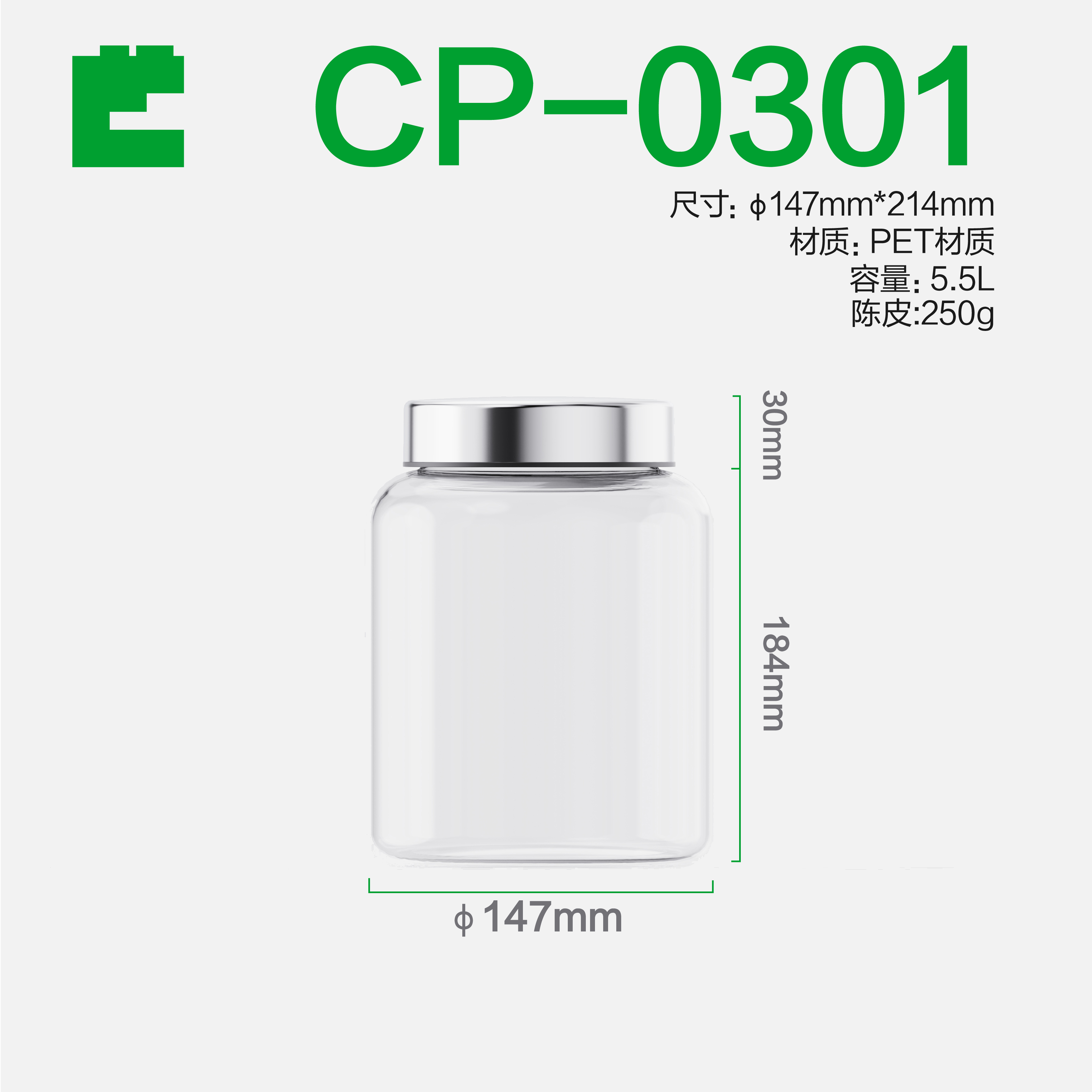 | Cp-0301 frasco de caramelo hermético | MASCOTA | Transparente | Aprobado por la FDA | 147*214 mm | Ecobox | 5.5L | Solución de comercialización a granel |